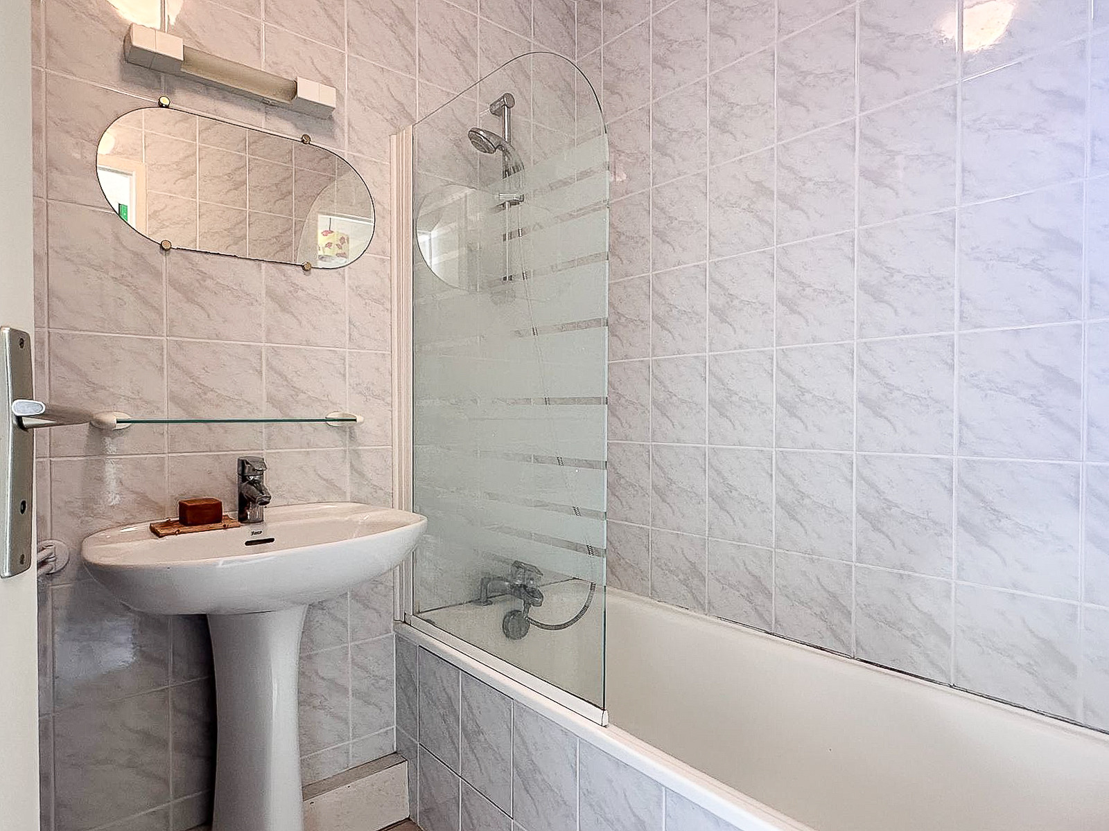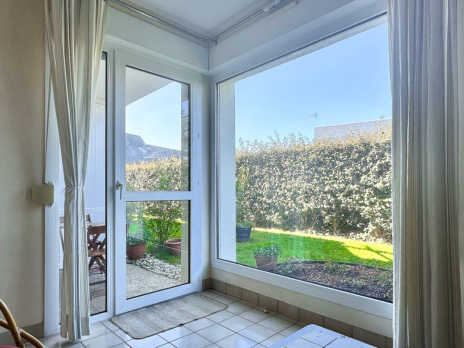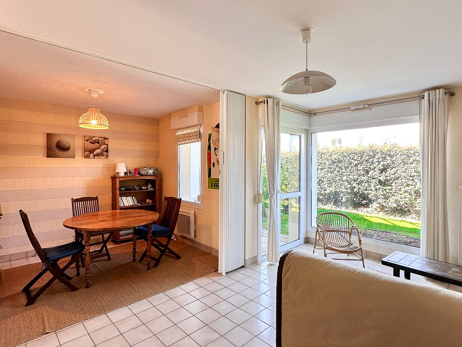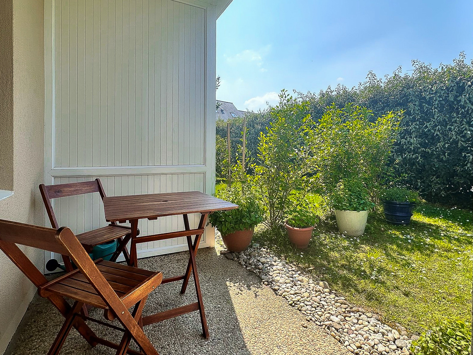 Situé en rez-de-chaussée, il dispose d’une terrasse abritée et d’un petit jardin privé, orienté à l’ouest. Un parking extérieur est également vendu avec l'appartement. La copropriété est calme et bien entretenue.