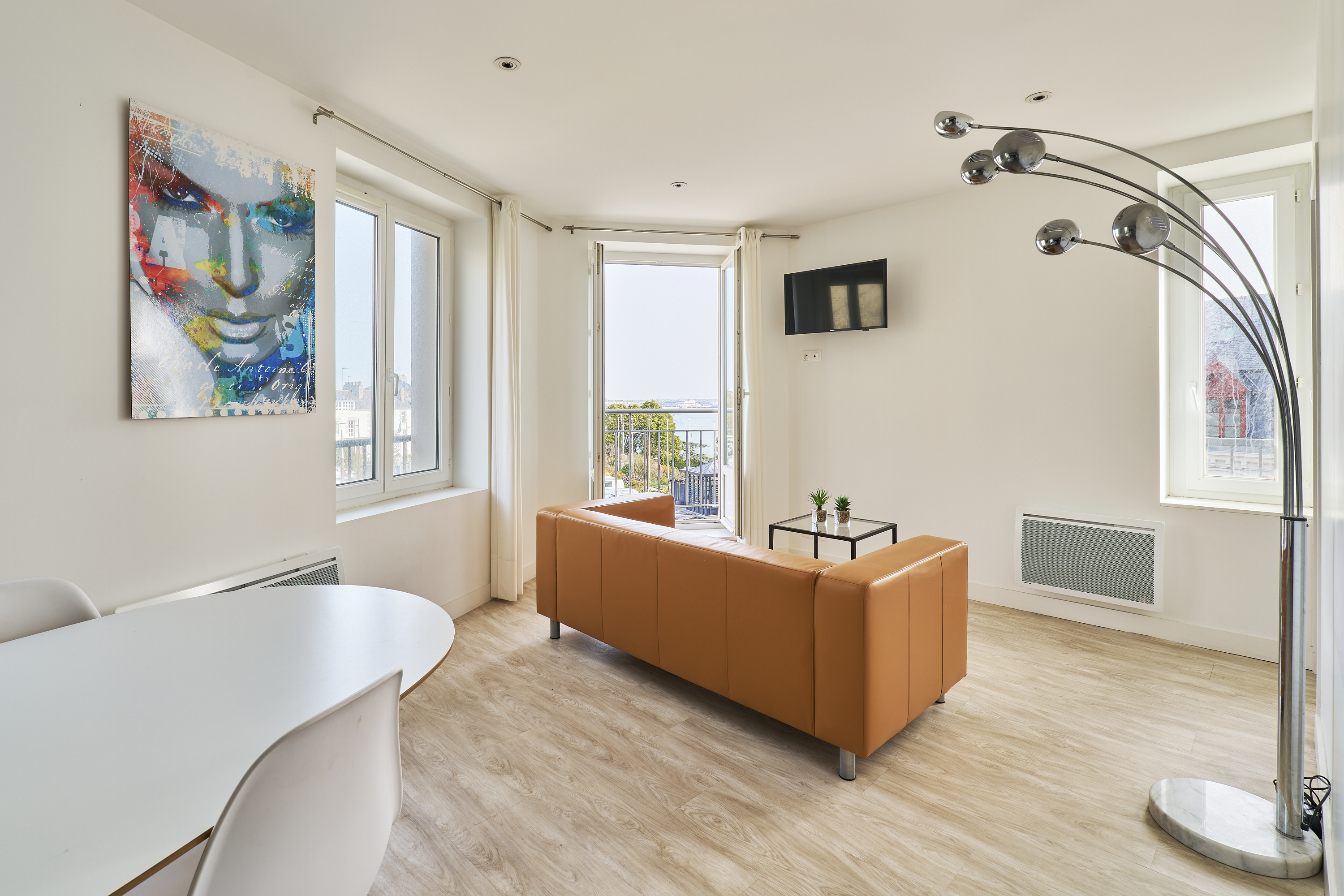 Chaque appartement se compose d’un séjour avec cuisine ouverte, de chambres avec salle d'eau pour plus de confort, de rangements optimisés avec dressing et placards. Le tout s’ouvre sur deux balcons privatifs, parfaits pour profiter de la vue sur la plage du Prieuré et des environs.