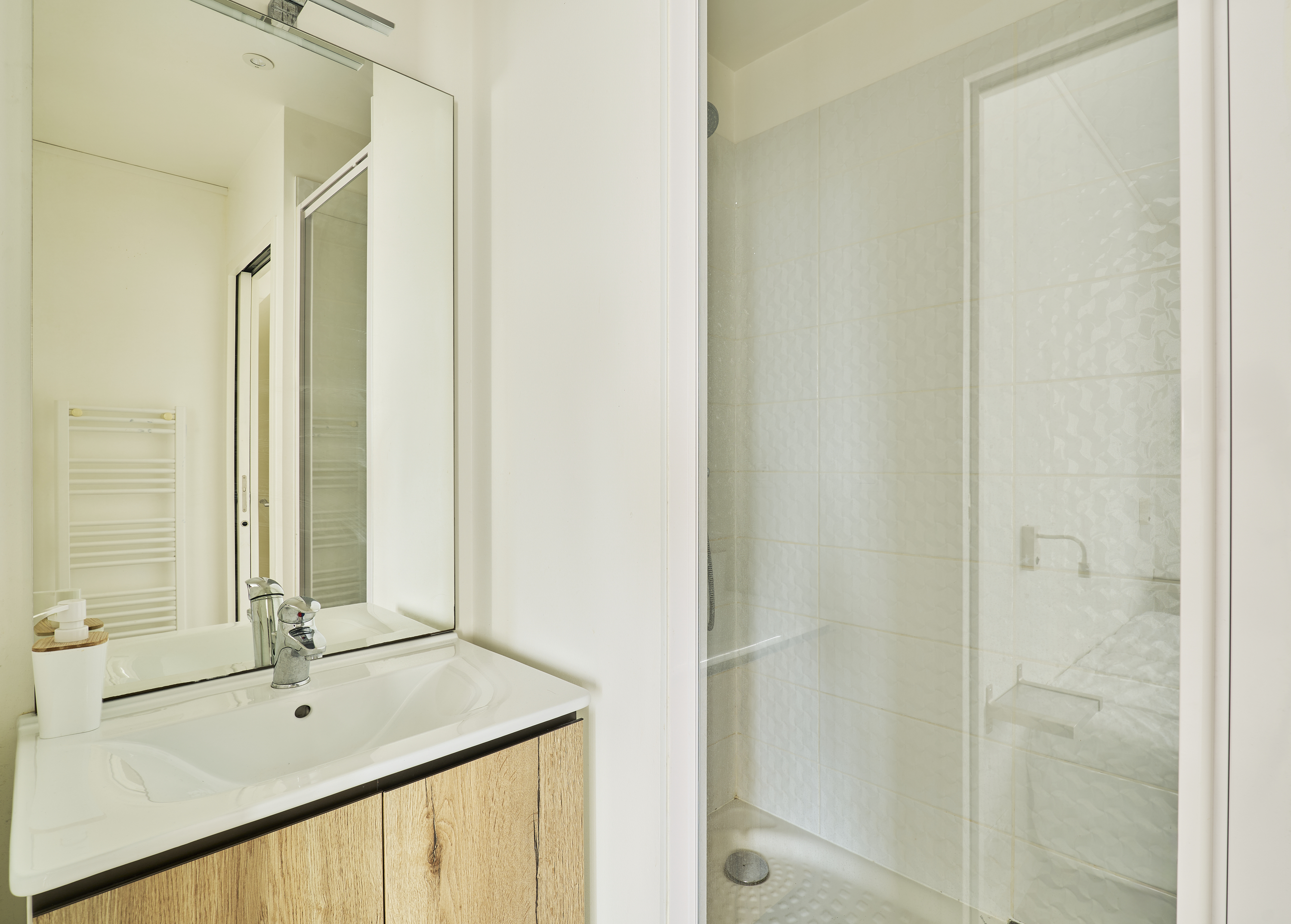 L’entrée sécurisée et le sas commun permettent une circulation fluide et pratique, tandis que l’ensemble se situe dans une résidence entretenue avec ascenseur, à proximité immédiate des commerces et de la plage.