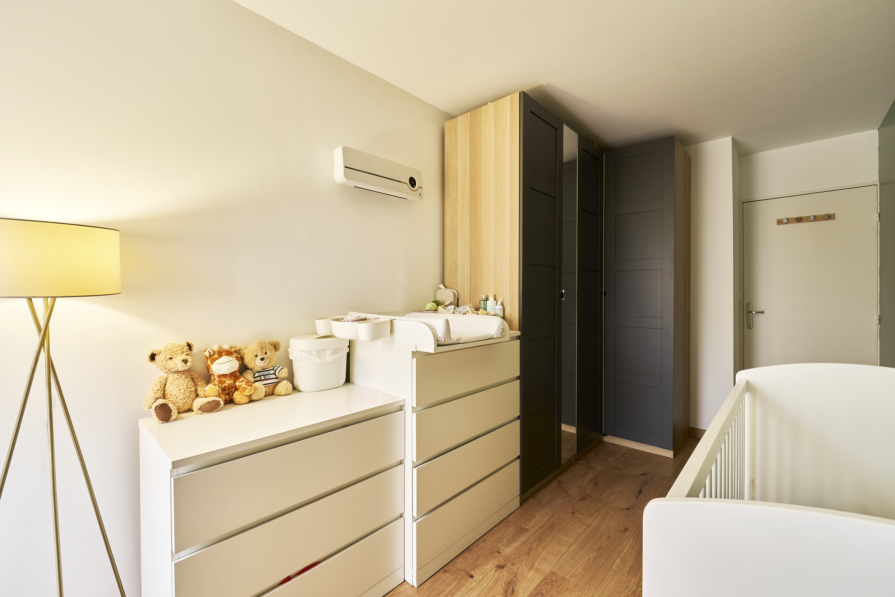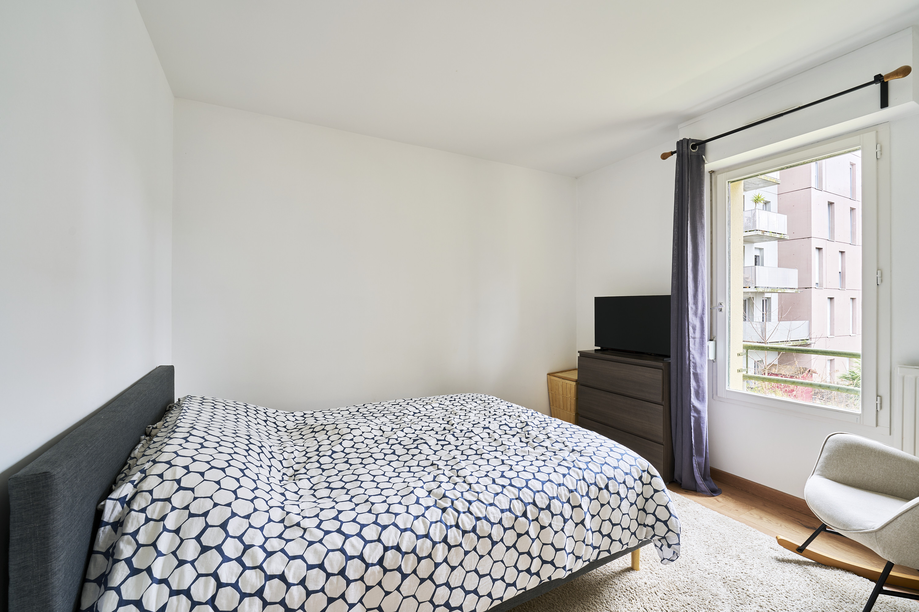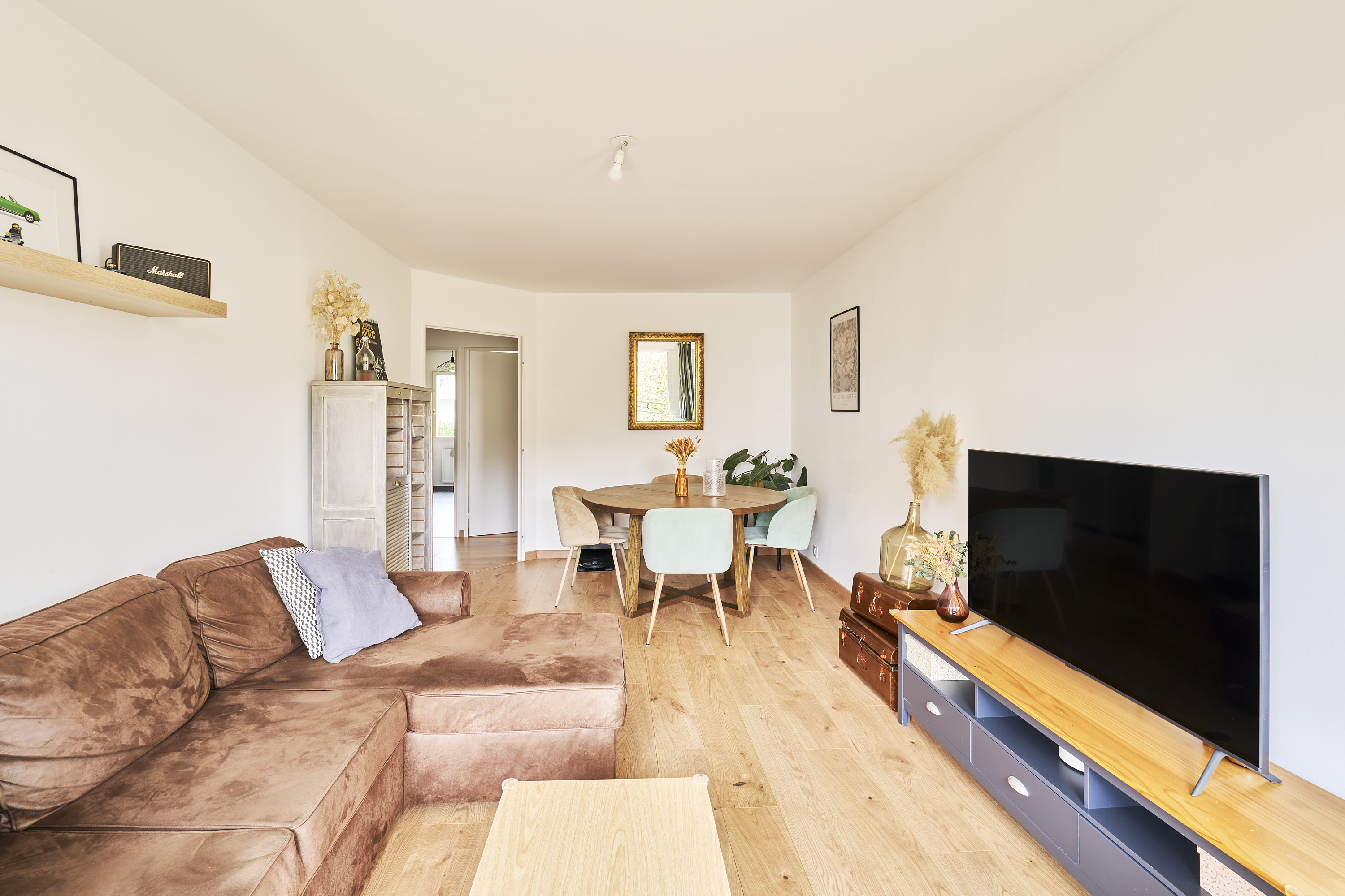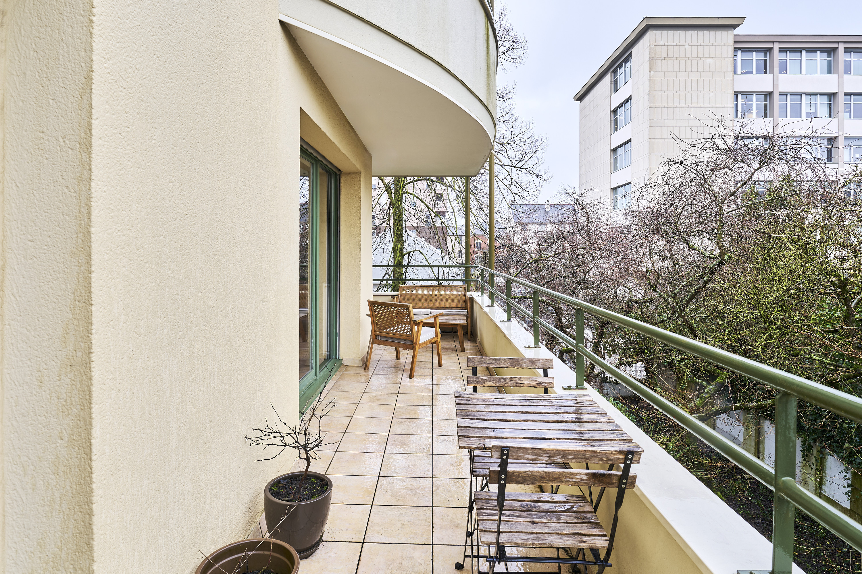 Le séjour, d’environ 20 m2, ainsi qu’une chambre, ouvrent sur un grand balcon de plus de 14 m2 orienté au sud, au pied de la promenade arborée Renée Conan.