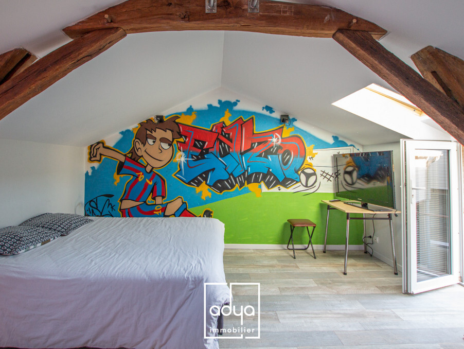 La maison, actuellement exploitée en Airbnb, dispose de 5 chambres de beaux volumes à l’étage, parfaites pour accueillir une grande famille ou poursuivre une activité locative. Le salon lumineux, agrémenté d’une magnifique cheminée en tuffeau réalisée par les Compagnons du Devoir, s’ouvre sur une cuisine spacieuse et fonctionnelle, créant un espace de vie chaleureux. Le rez-de-chaussée comprend également une salle d’eau avec WC, complétée à l’étage par deux pièces d’eau supplémentaires, offrant confort et praticité au quotidien.