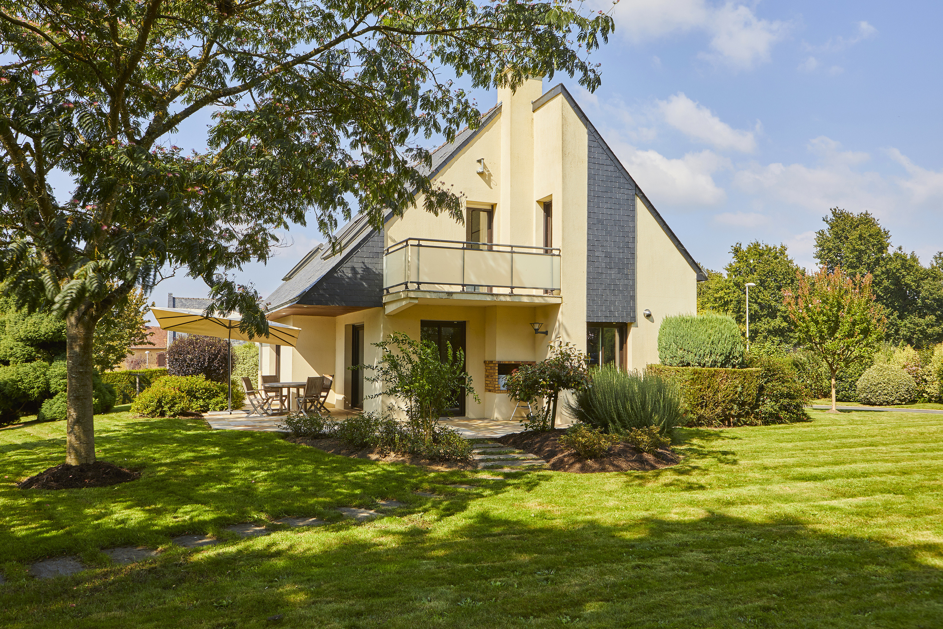 Cette maison, construite en 1991 a fait l’objet d’une extension en 2004 et dispose ainsi de 6 chambres permettant d’accueillir une grande famille, ainsi que de plusieurs espaces permettant d’aménager des postes de télétravail, des pièces pour vos loisirs : salle de jeux, salle de sports, home cinéma, ou encore d'accueillir votre activité professionnelle libérale.