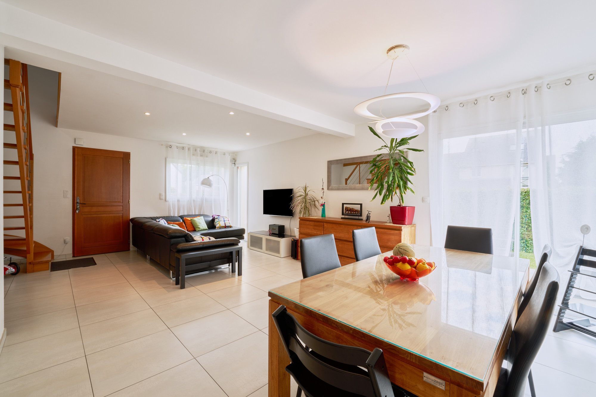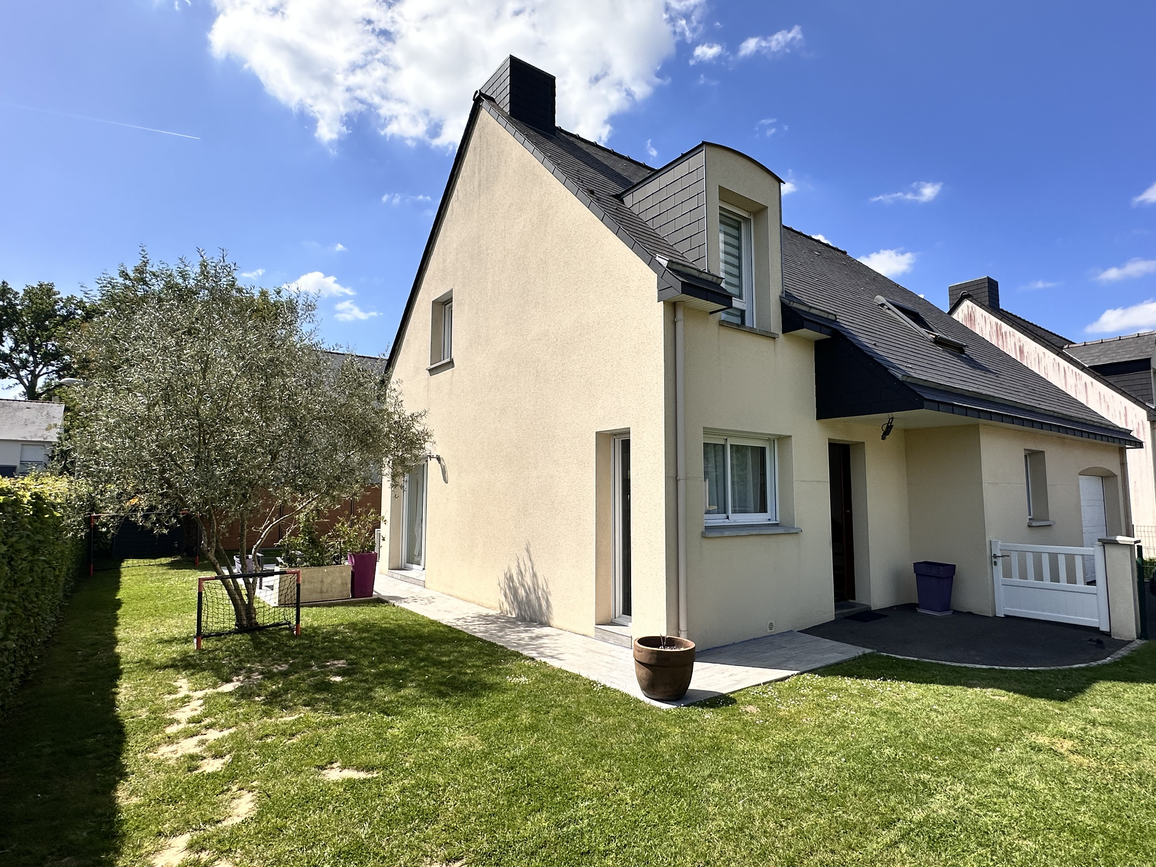 Construite en 2011, non mitoyenne, elle dispose ainsi de 4 chambres dont une au rez-de-chaussée avec sa propre salle d’eau. Le salon-séjour, d’environ 35 m², est orienté au sud-ouest, avec deux baies vitrées apportant toute la luminosité nécessaire à cette pièce principale. La cuisine, aménagée et équipée, est ouverte sur le salon et dispose d’environ 13 m², ainsi que d’une arrière cuisine/buanderie d’environ 10 m².