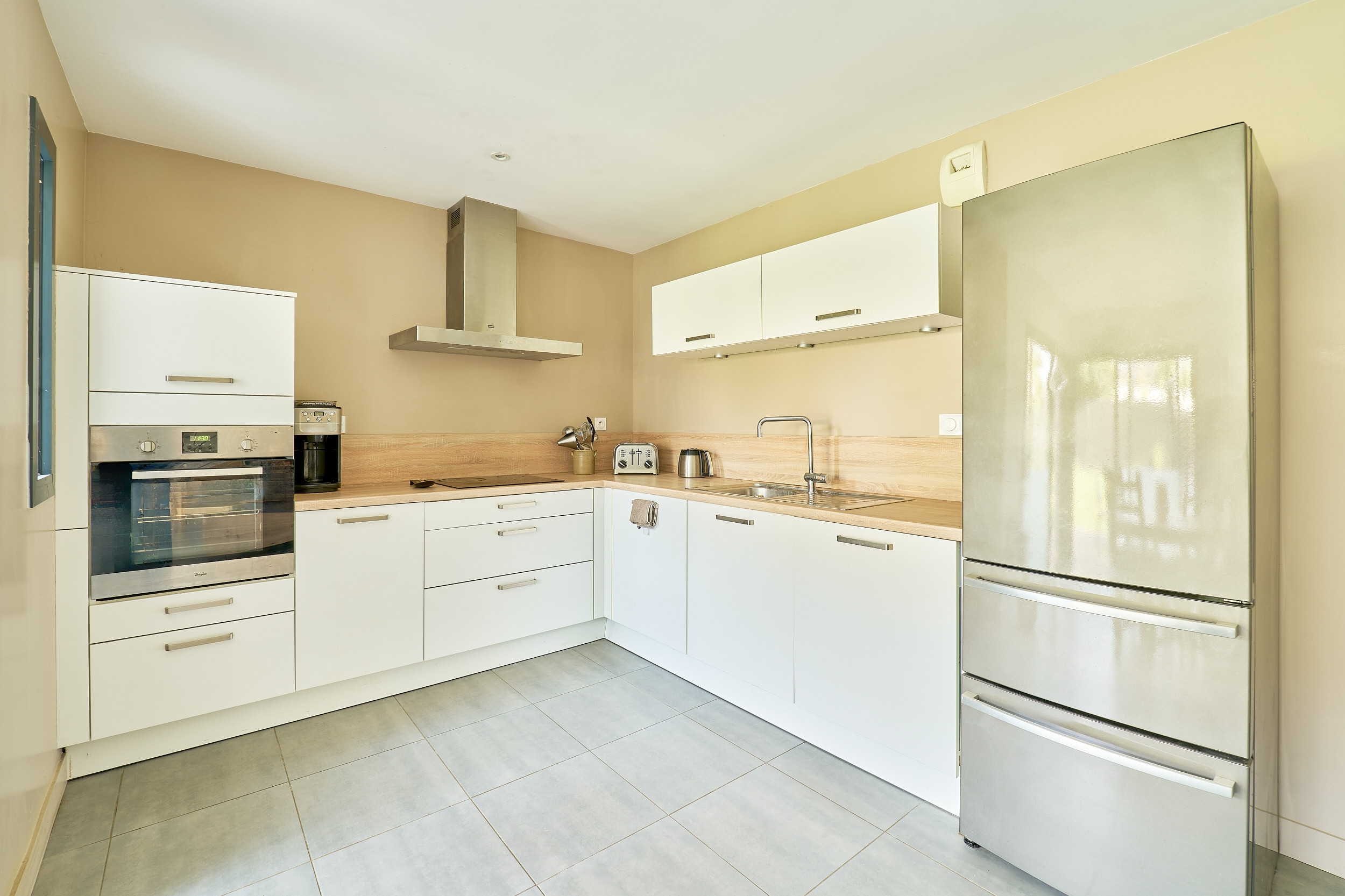 À l’étage, trois chambres supplémentaires et une salle de bains accueillent toute la famille.