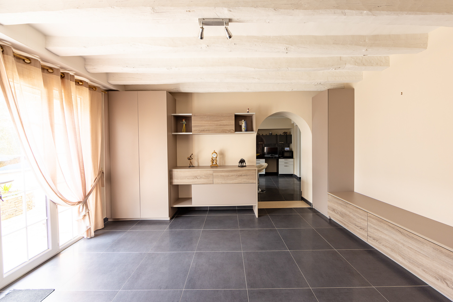 L’entrée spacieuse avec rangements mène à une belle pièce de vie traversante comprenant salon, séjour et cuisine ouverte, idéale pour recevoir. Le tout s’ouvre sur une terrasse exposée sud, pour des moments ensoleillés en toute tranquillité.