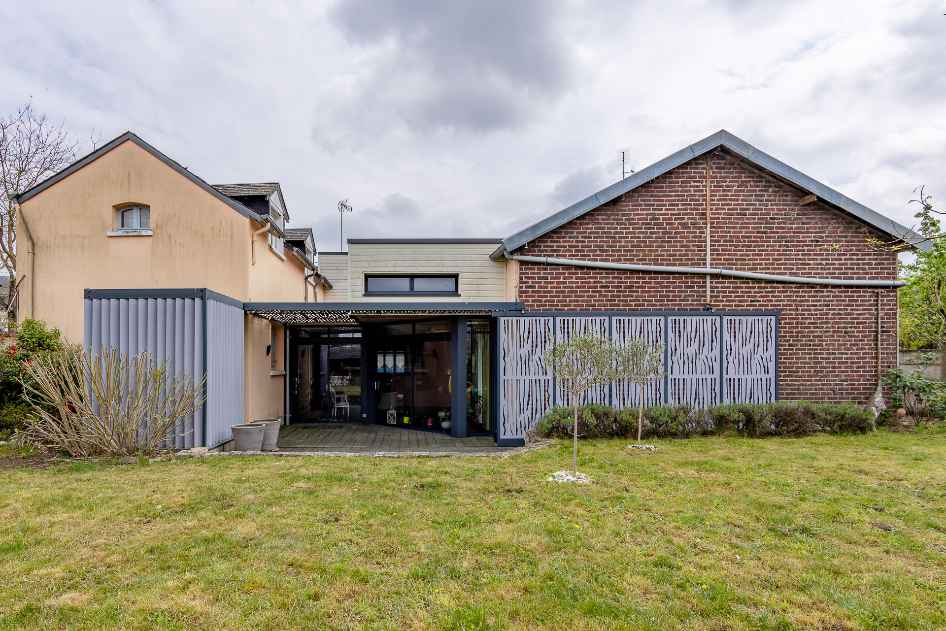 À l’extérieur, un grand jardin avec préau vous offre un agréable espace de détente.