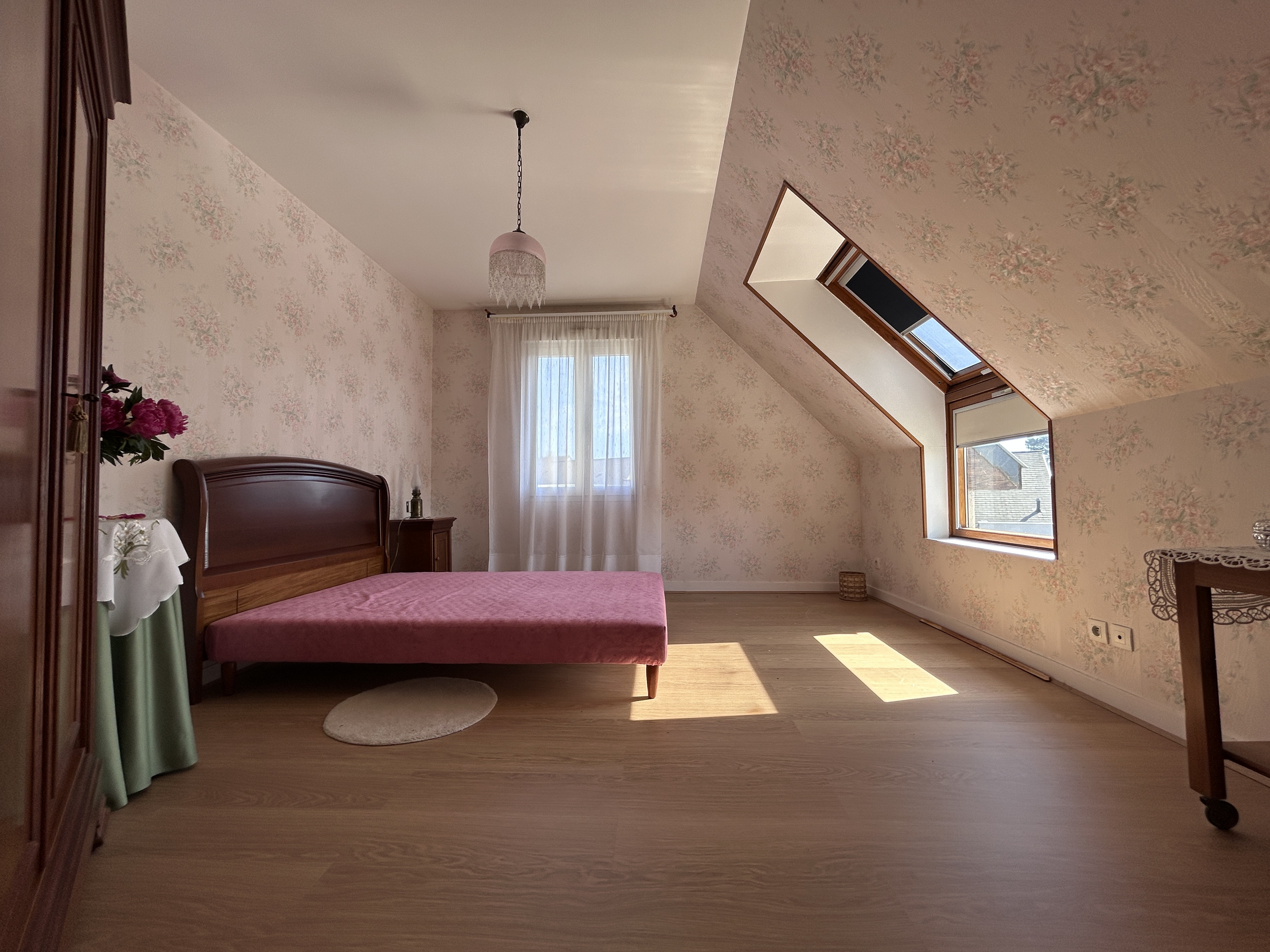 Dès l’entrée, un vaste espace de vie ouvert sous toit cathédrale : salon, séjour et cuisine indépendante, prolongée par un cellier fonctionnel rendent le bien exceptionnel.