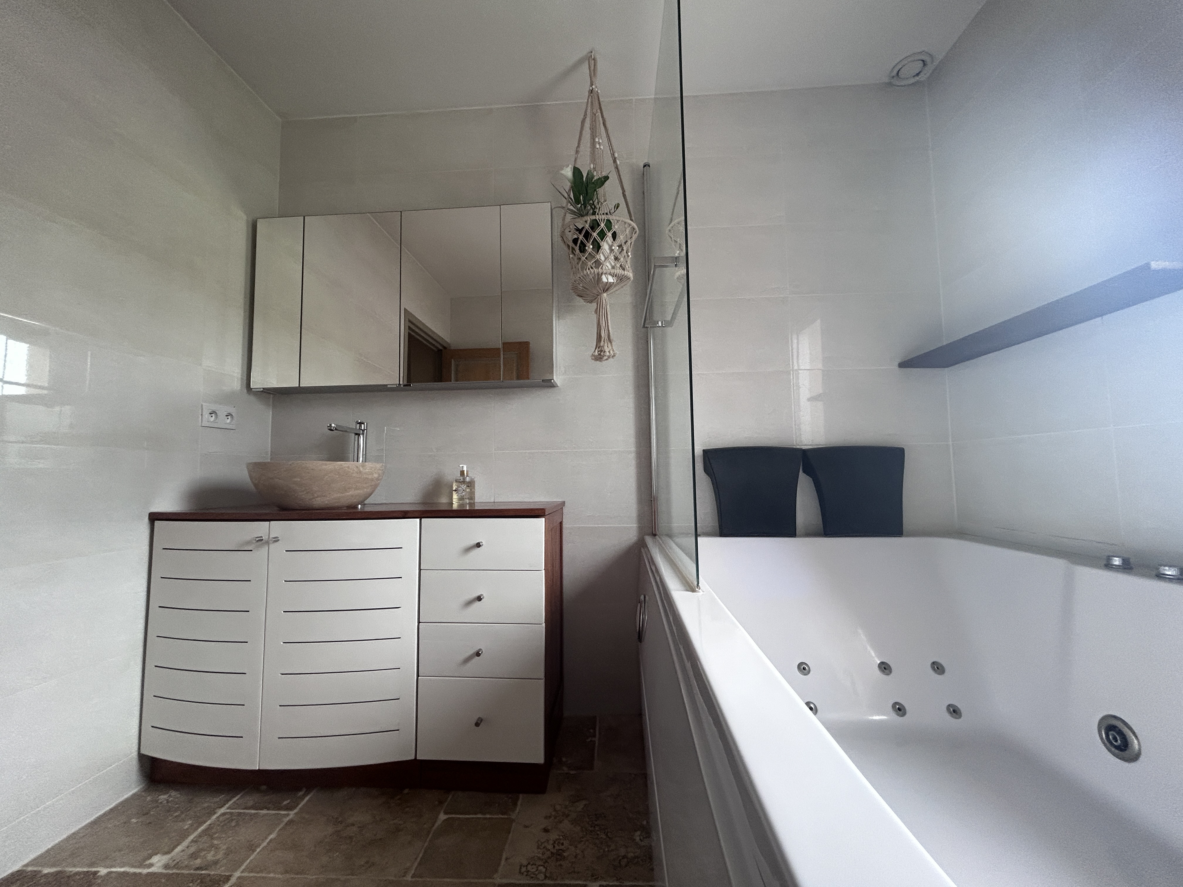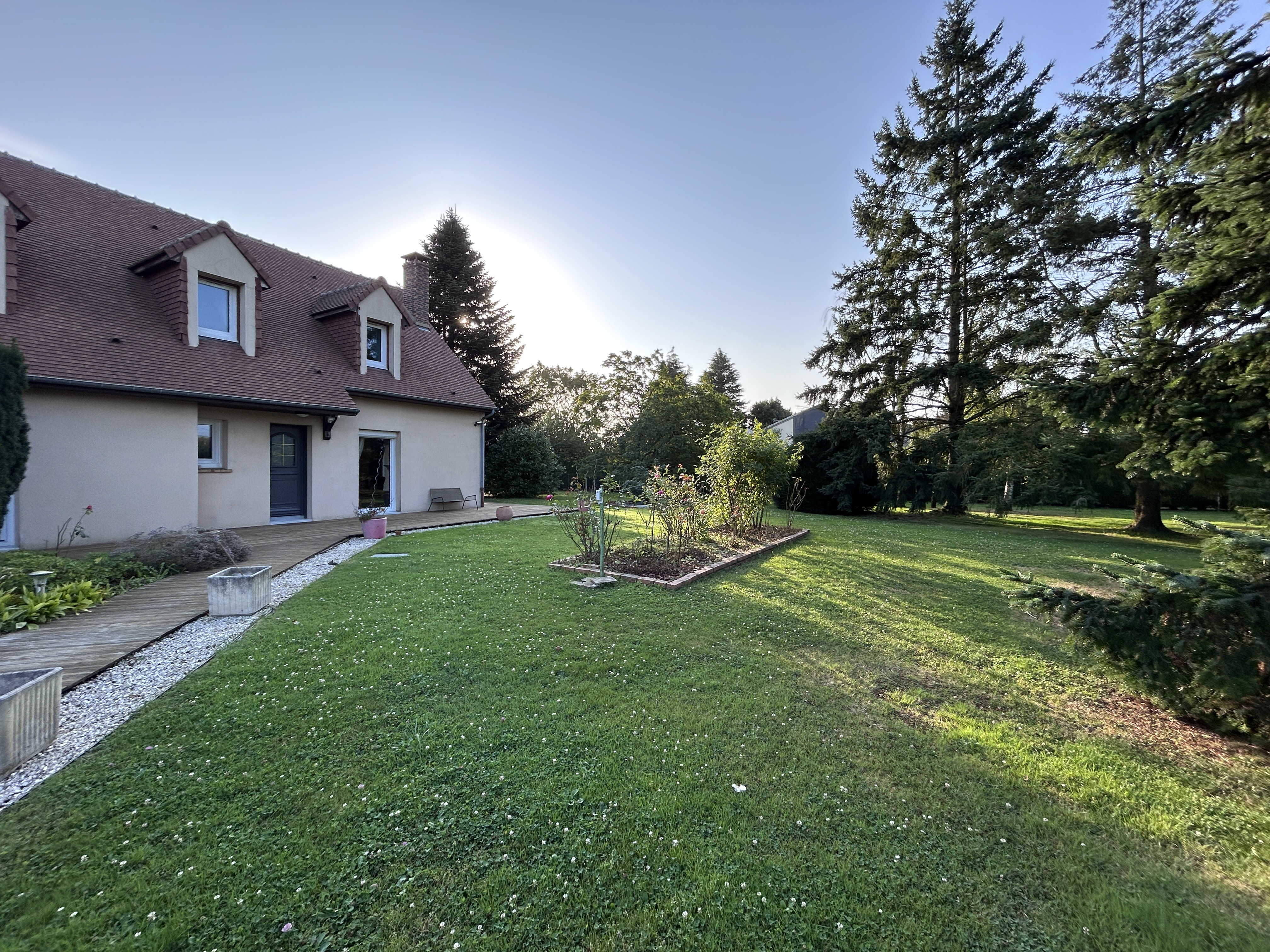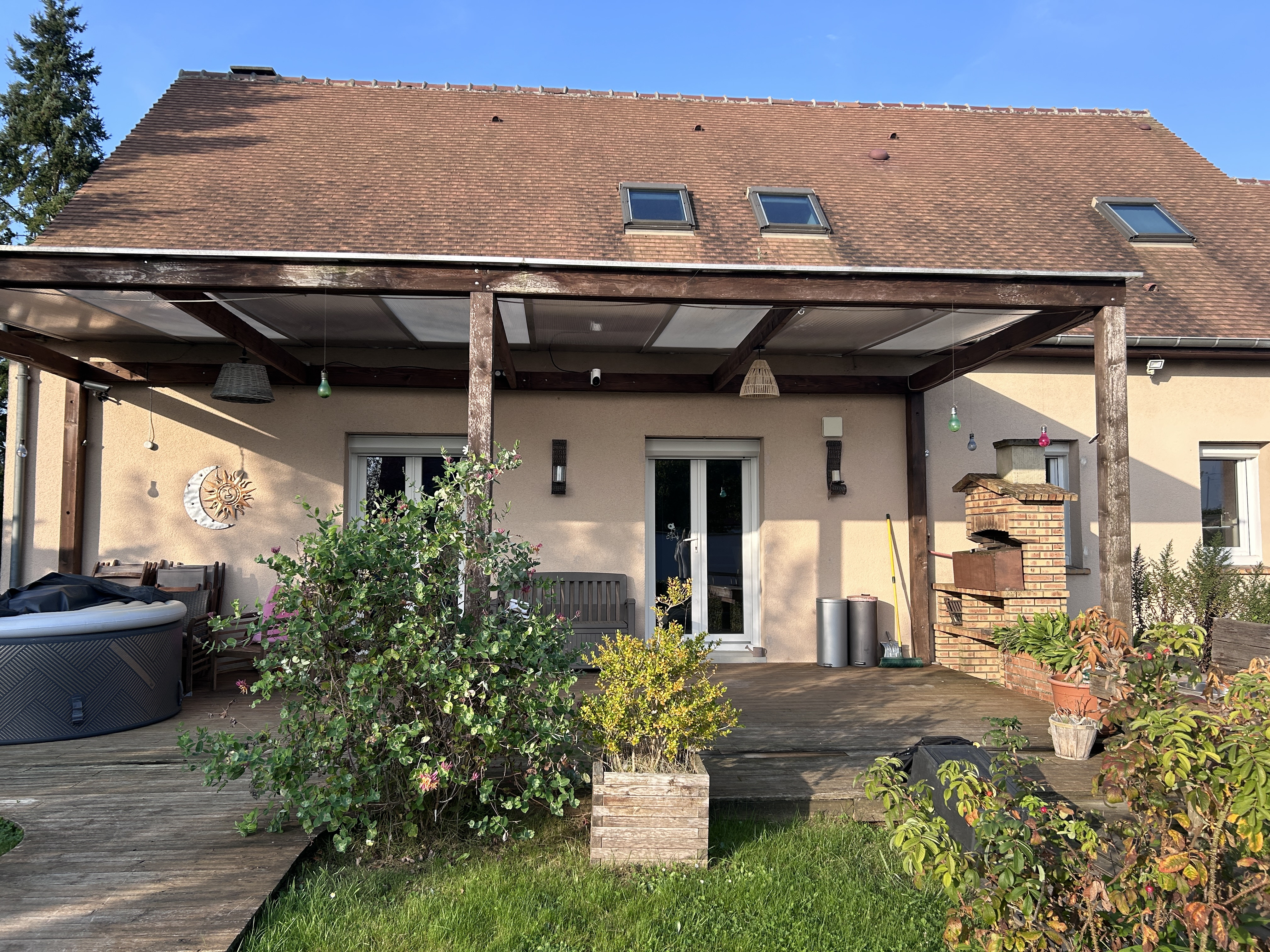 Le terrain arboré et soigneusement entretenu, agrémenté d’une belle terrasse avec jaccuzzi laisse la possiblité à une piscine selon les souhaits.