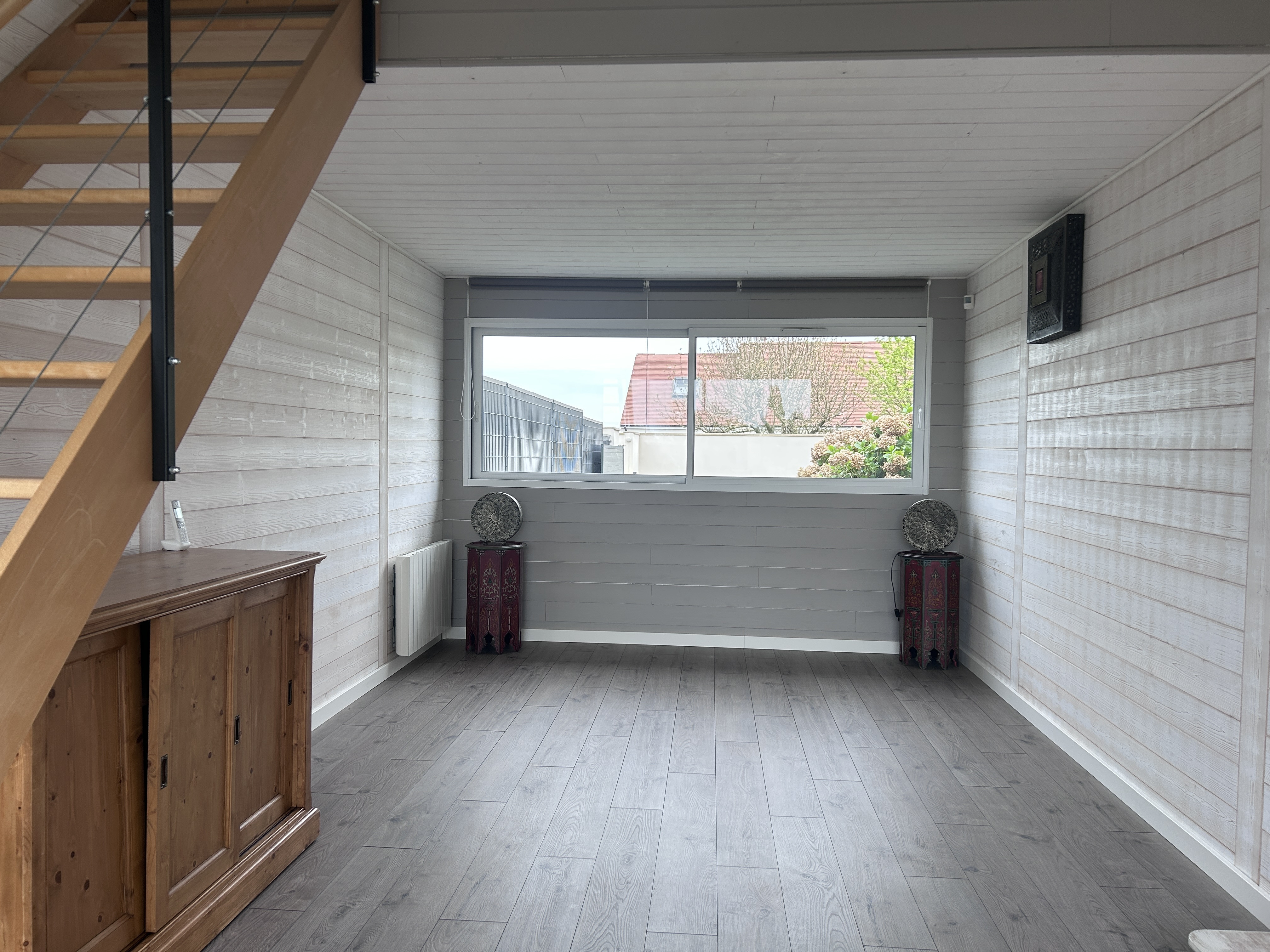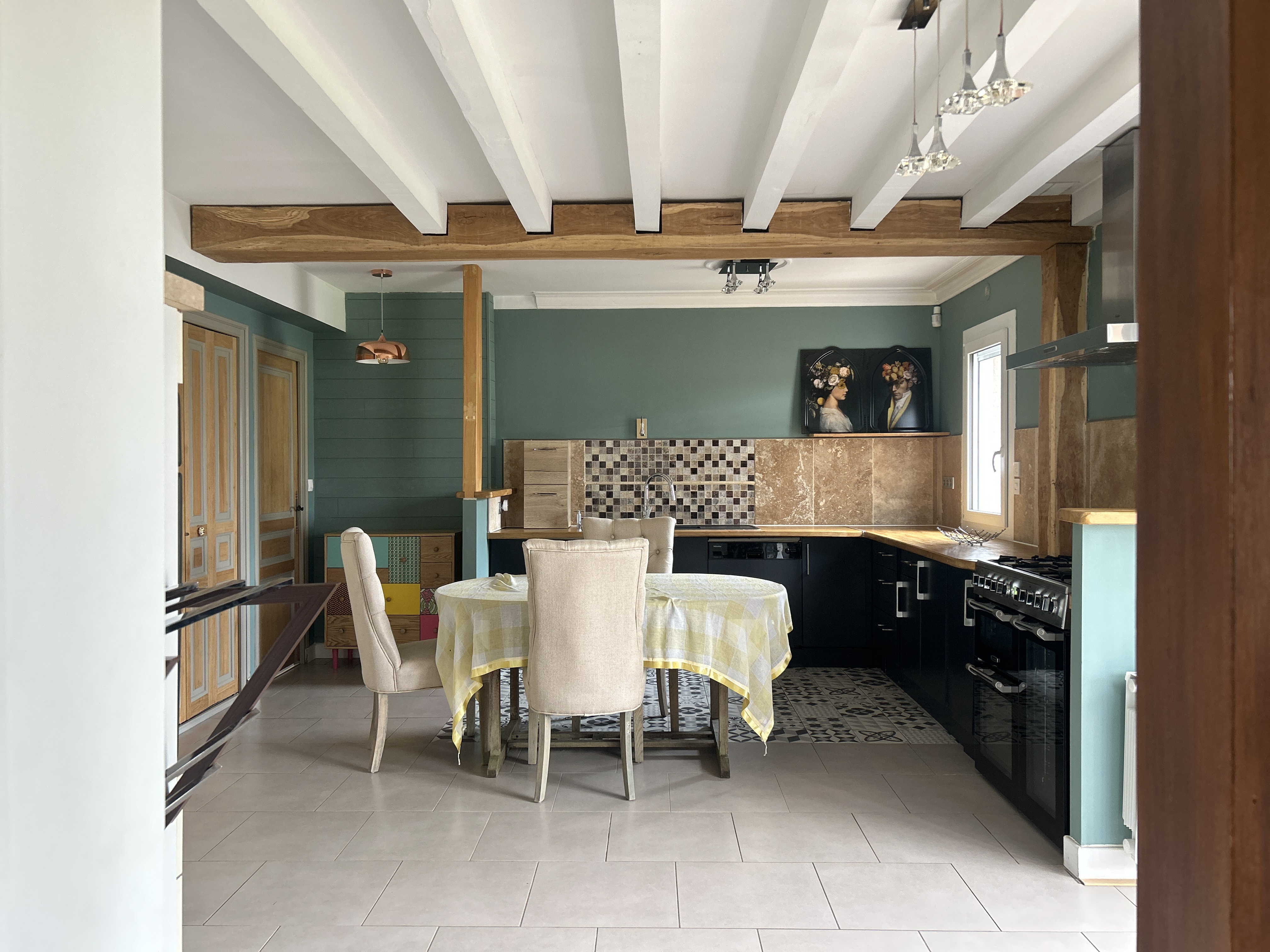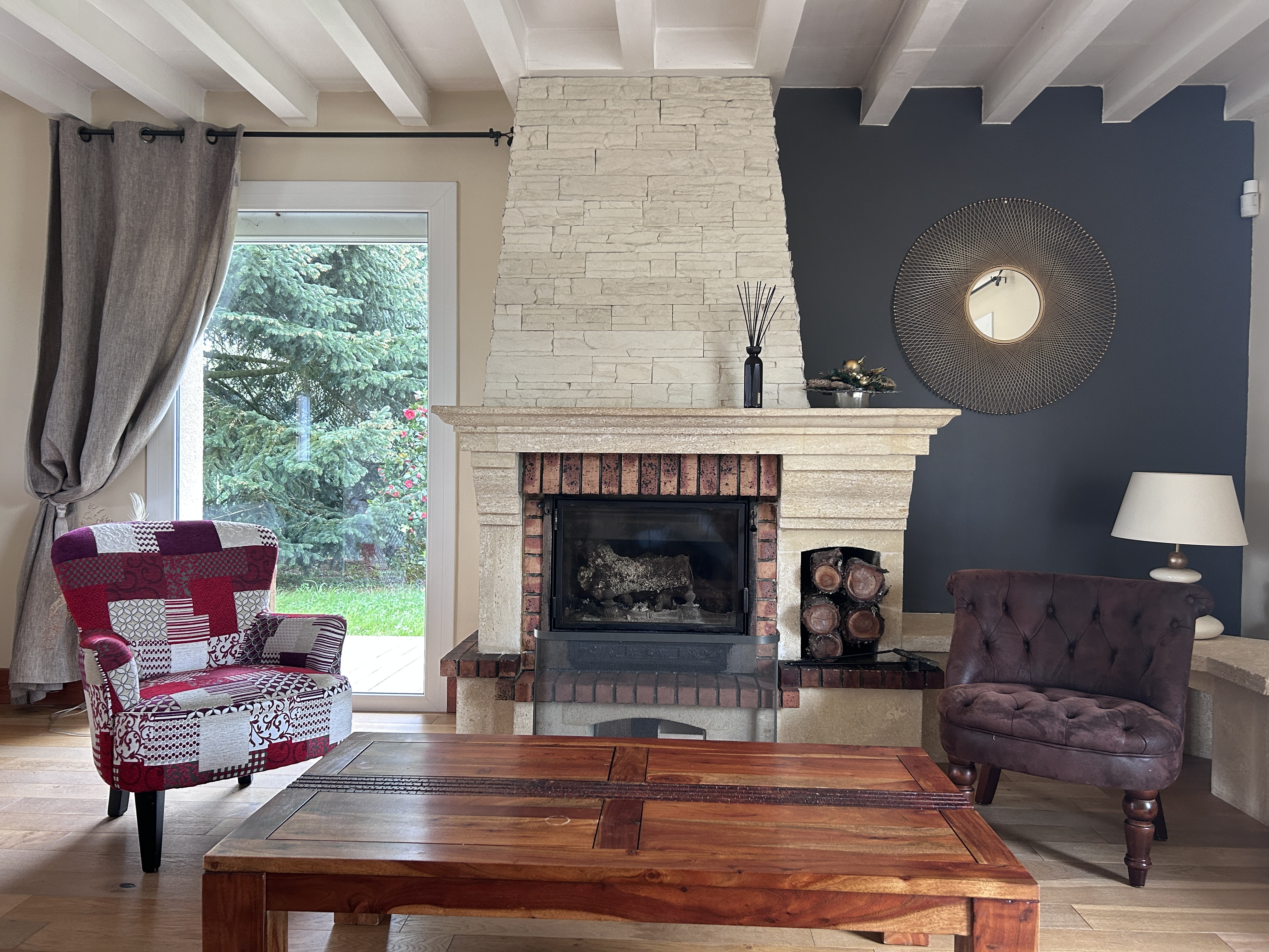 Grand espace de vie lumineux, parfait pour des moments conviviaux ou se détendre dans une atmosphère chaleureuse.